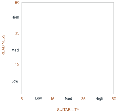 Below are your self-assessment results. The ten questions you answered measure two dimensions: Readiness and Suitability. While you may have responded to this based on your own perceptions, if different members of your family were to complete this tool, it may yield different results.